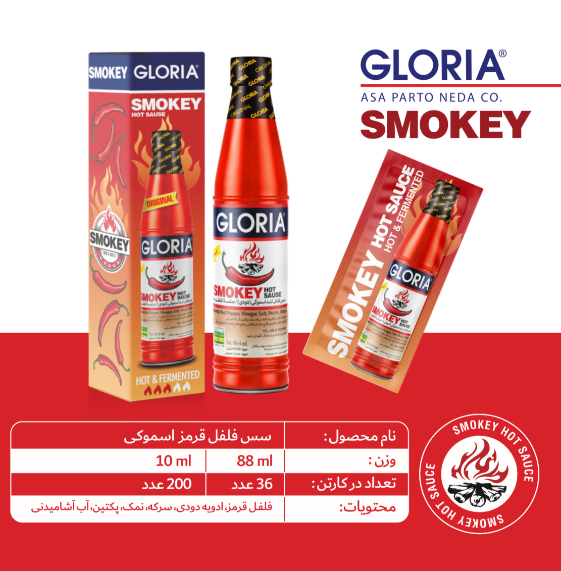 سس فلفل قرمز اسموکی گلوریا (Gloria Smokey Hot Sauce) یک چاشنی متفاوت و خاص برای علاقهمندان طعمهای دودی و تند است. این سس از فلفل قرمز مرغوب تهیه شده و با استفاده از فرآیند دودی و تخمیری (Hot & Fermented)، عطری عمیق و ماندگار شبیه به طعم آتش و زغال ایجاد میکند.